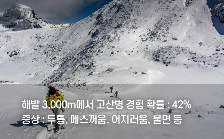 저산소증이 발생하는 증상으로 고산 트레킹 및 등반을 하는
